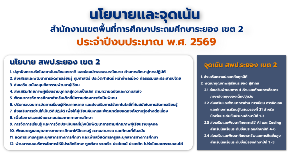 แผน/รายงานผลการปฏิบัติงาน สำนักงานเขตพื้นที่การศึกษาประถมศึกษาระยอง เขต 2